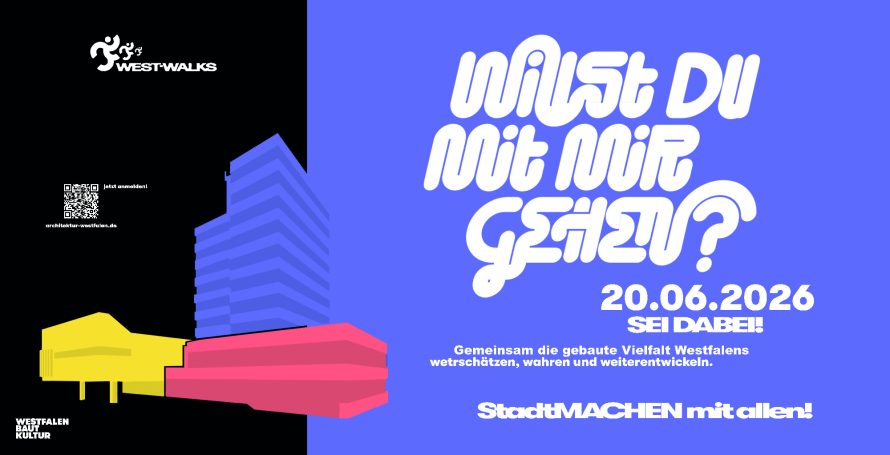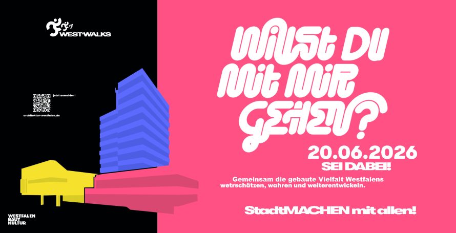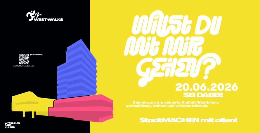 Das Projekt WESTFALEN BAUT KULTUR möchte möglichst viele Menschen zur Kultur des Bauens in Westfalen ins Gespräch bringen. Im Mittelpunkt stehen drei große Fragen der Gegenwart: Was bewegt uns? Worauf bauen wir? Wie kann gut gebauter Raum sichtbar(er) werden? Gemeinsam mit Ihnen, die in Westfalen wohnen, leben und bauen, möchten wir mit dem Projekt WESTFALEN BAUT KULTUR vielfältige Antworten sammeln und zugänglich machen.